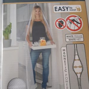100*210 cm-es mágneses záródású szúnyogháló függöny ajtóra. Lakossági felhasználásra. Egyszerűen felszerelhető a dobozban található készlettel. Fa ajtóra rajzszeggel, műanyag, vagy fém ajtóra öntapadó segítségével. Felszereléskor a mágneses oldalak párhuzamosságára ügyelni kell, ellenkező esetben a mágnesek nem tudnak összezárni.